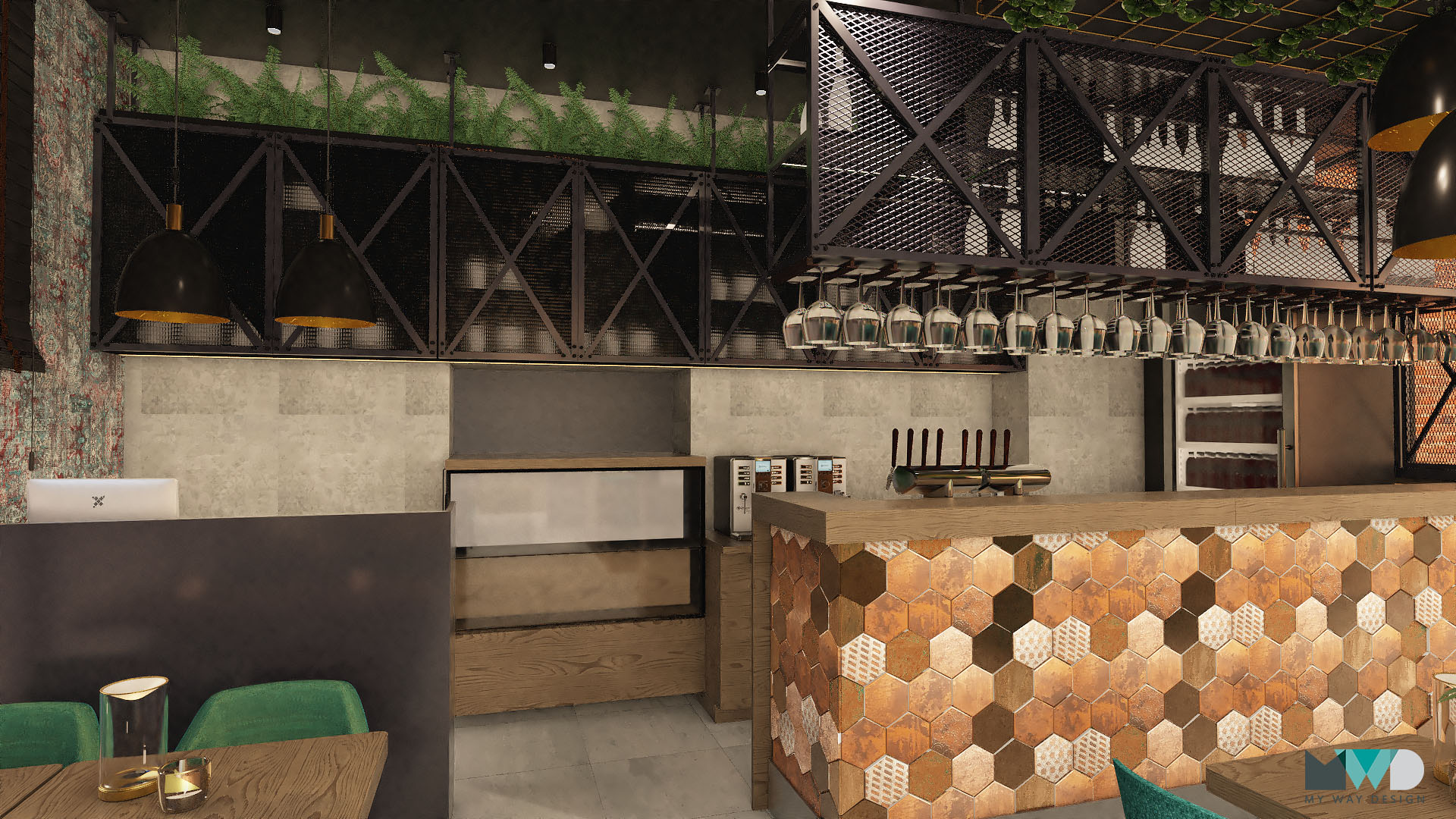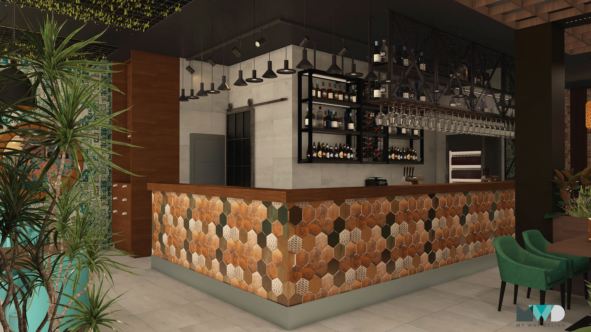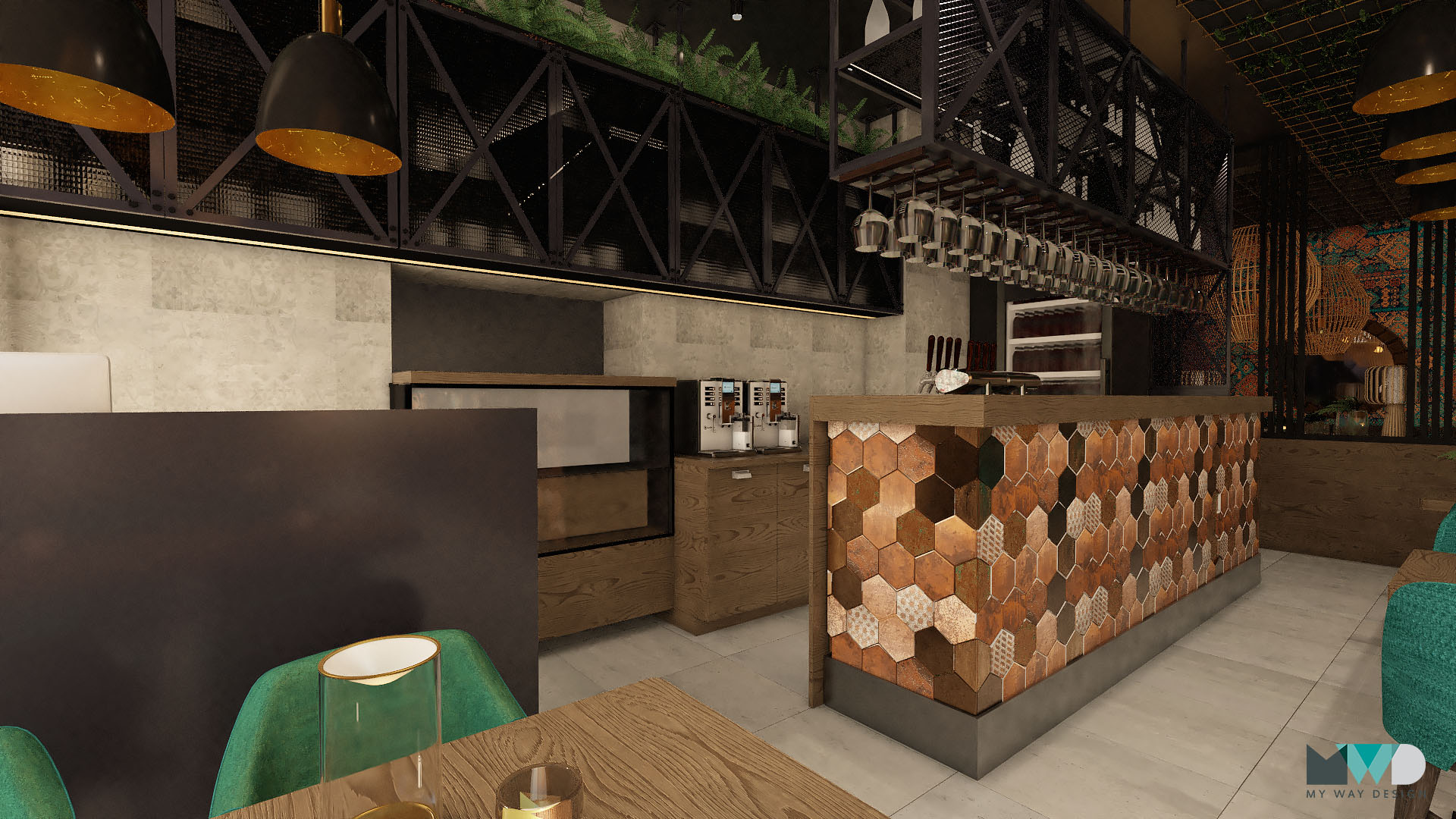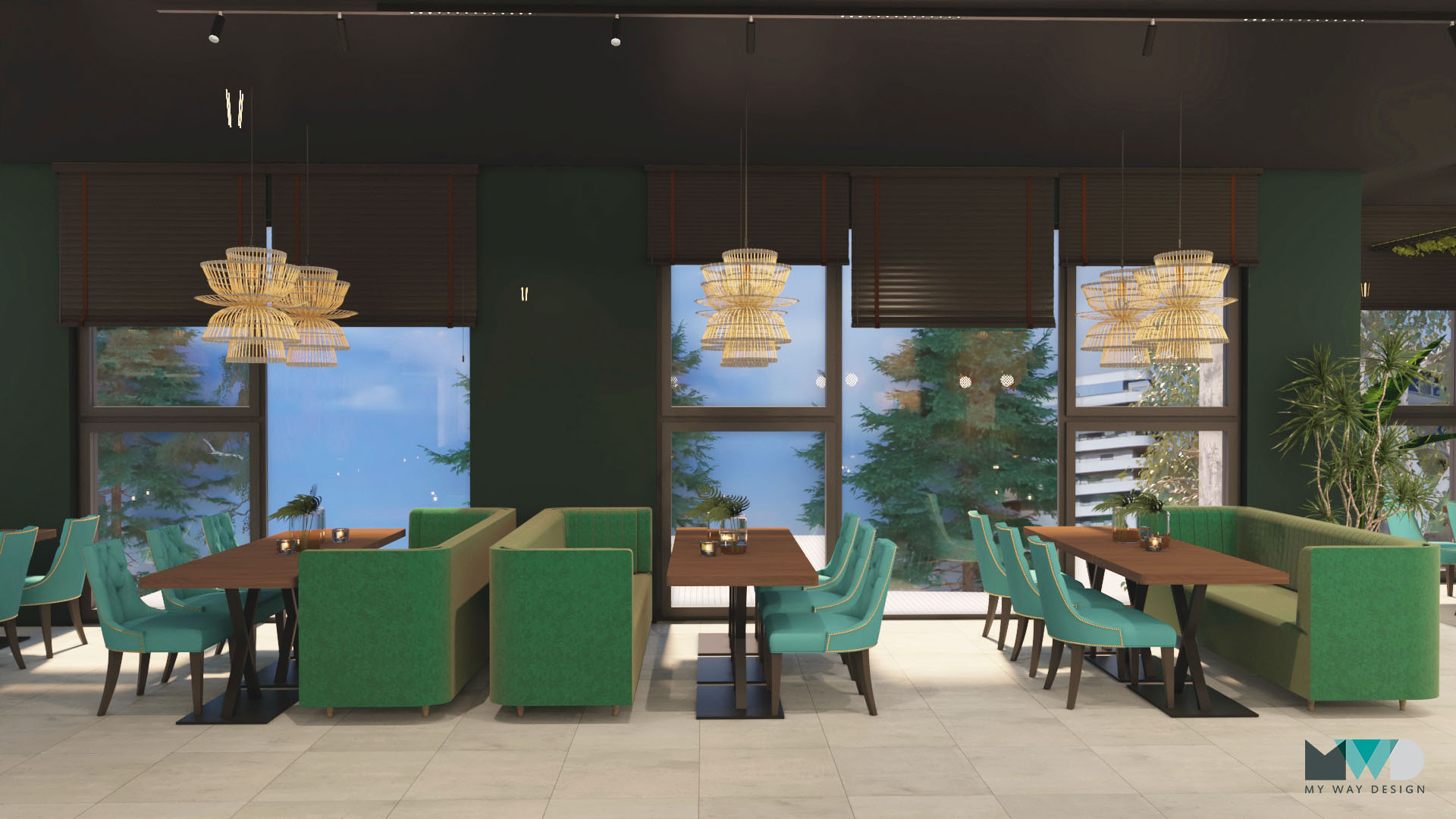 Wnętrze restauracji to prawdziwa gratka dla miłośników orientu. Ściany zdobią fototapety z orientalnymi wzorami, które przenoszą gości w klimat bliskowschodnich bazarów. Metalowe lampy, wiszące nad stołami, dodają wnętrzu klimatu, przypominając tureckie kawiarnie. Zieleń odgrywa tu kluczową rolę – liczne rośliny, starannie wkomponowane w drewniane osłony, ożywiają przestrzeń i wprowadzają atmosferę relaksu.