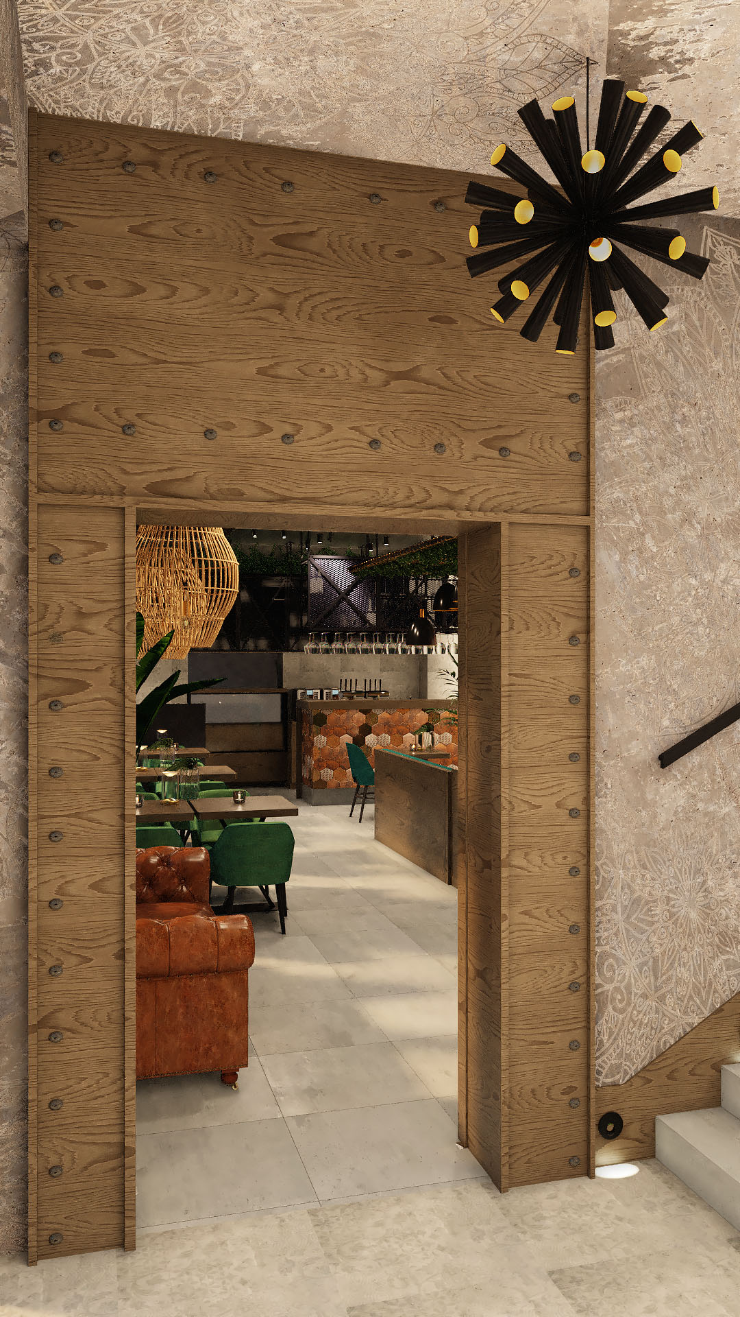 Charakterystycznym elementem restauracji są także loftowe akcenty. Konstrukcje regałów przy barach, wykonane z metalu i drewna, nawiązują do surowości industrialnych wnętrz. Ściany częściowo pokryte cegłą i okładzinami drewnianymi tworzą przytulny, a zarazem minimalistyczny klimat, który idealnie współgra z orientalnymi dekoracjami.
